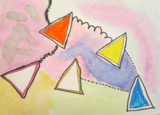 - Students use watercolor paint to complete their artwork by adding color the background or area behind their shapes